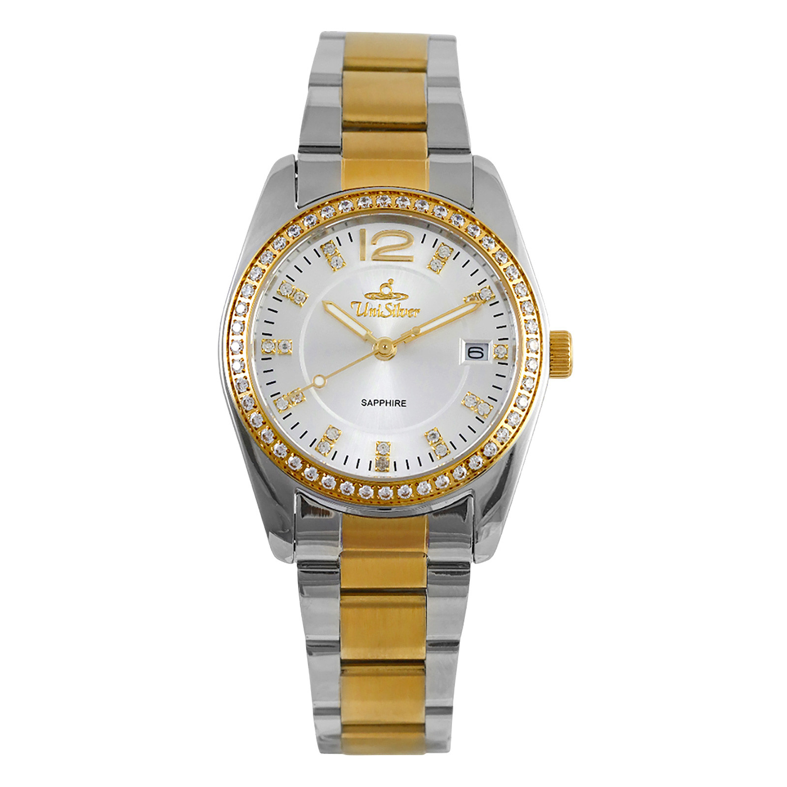 Women's Small Analog Sapphire Sparkling Crystals Silver/Two-Tone (Silver and Gold) Stainless Steel KW3614-1304 Watch