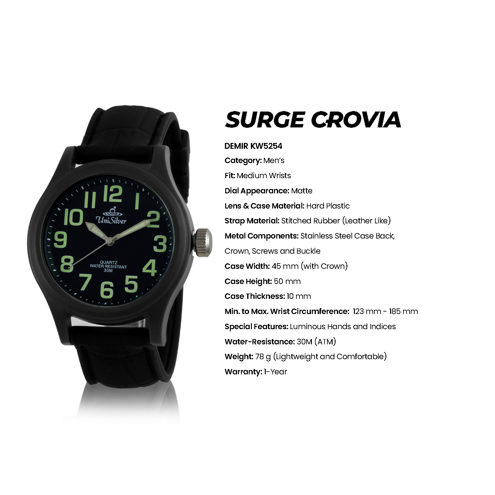 Men's Medium Analog Light Green /Black Stitched Rubber KW5254-1001 Watch