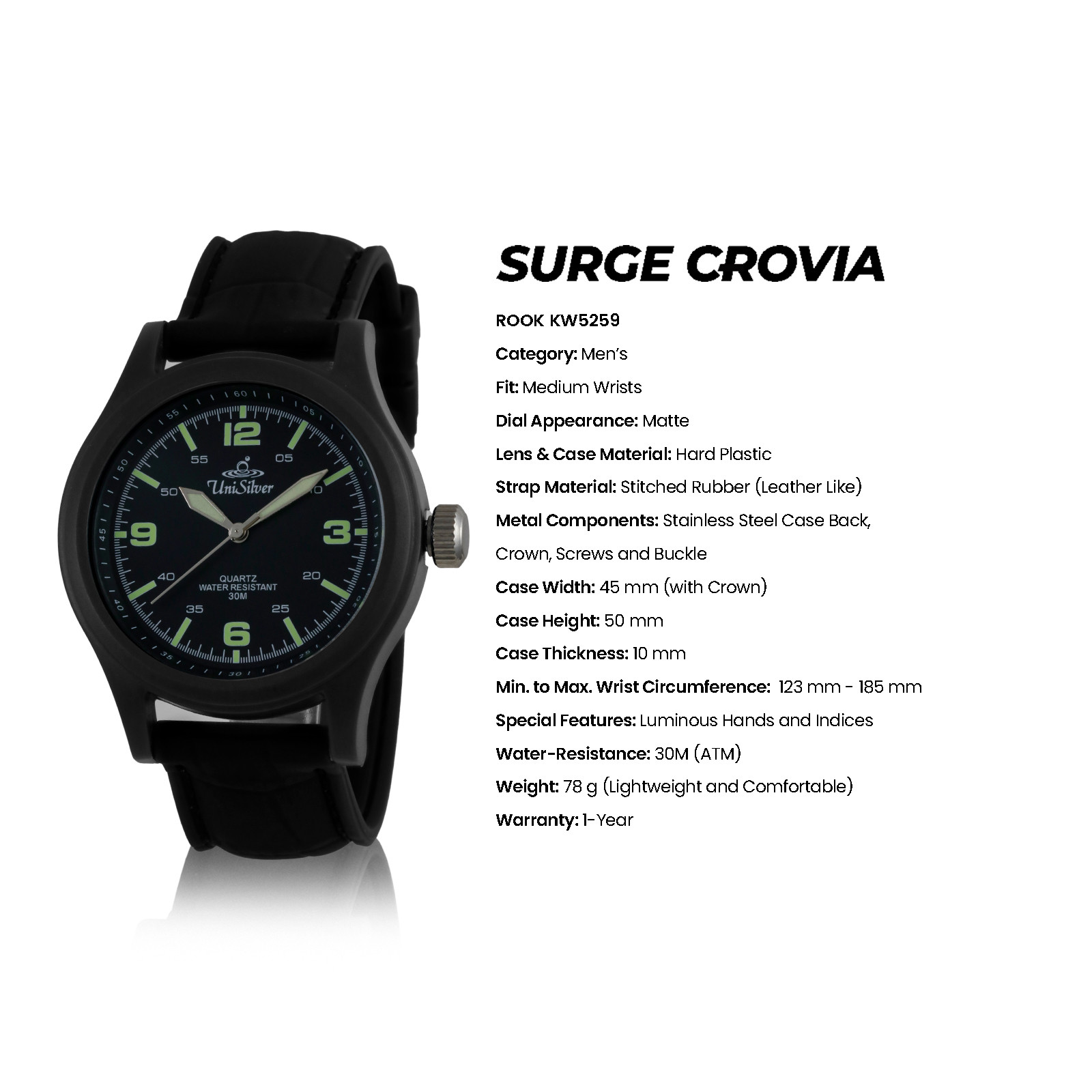 Men's Medium Analog Light Green /Black Stitched Rubber KW5259-1001 Watch