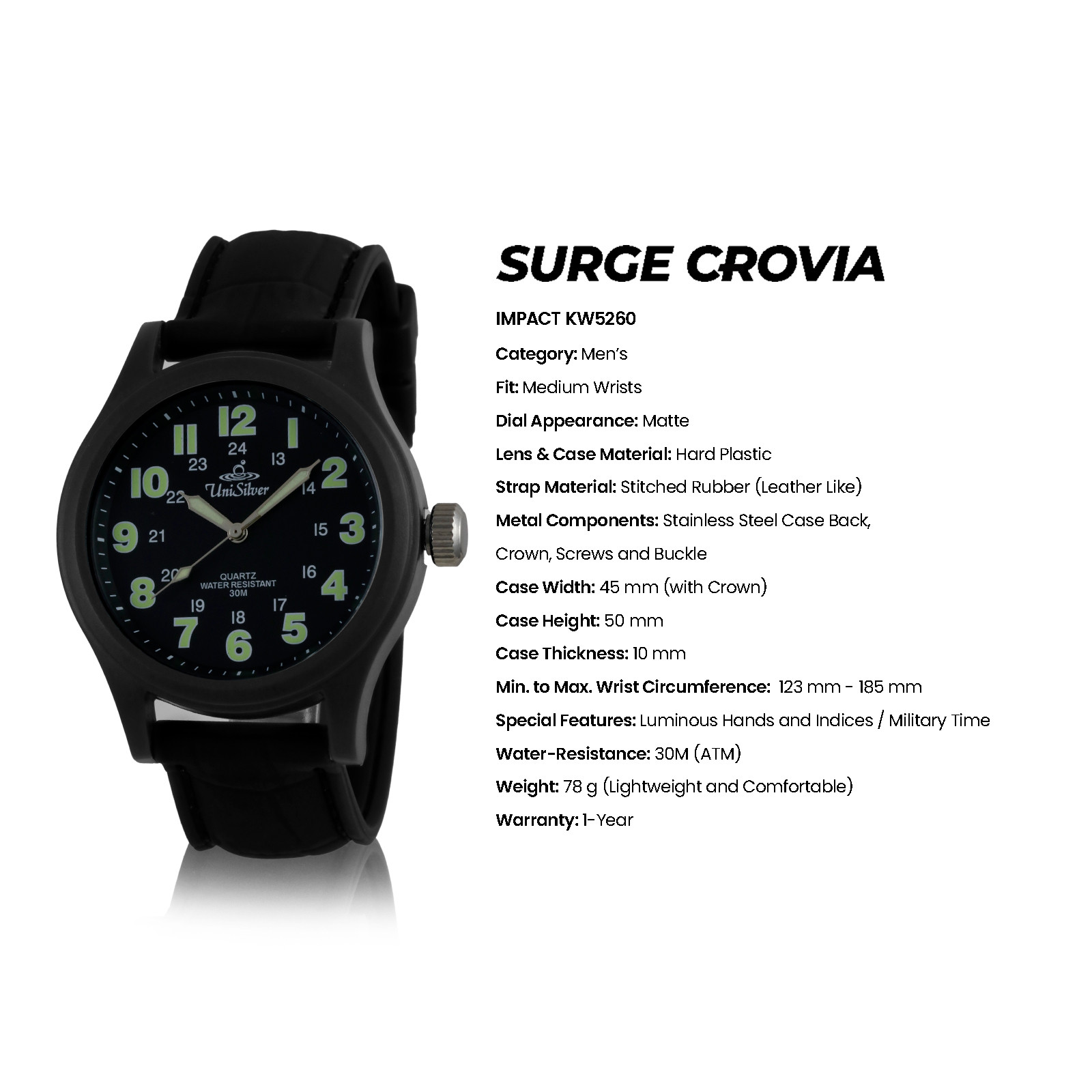 Men's Medium Analog Light Green /Black Stitched Rubber KW5261-1001 Watch