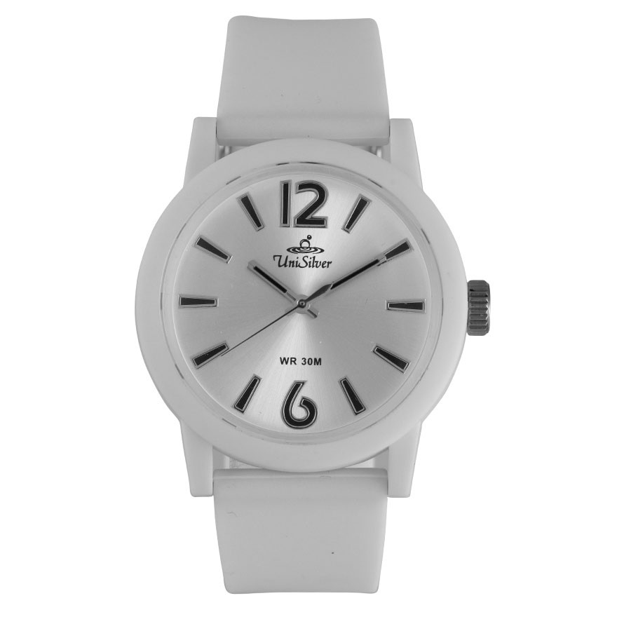 Express a little of your youthful and playful side with the fashionable Playsome watch from UniSilver TIME! The wide dial displays the 6 and 12 hour indices in kooky fonts; the matte plastic casing is a classic yet trendy shape; and the soft matte rubber strap is comfortable and almost toy-like in texture. It is made of high-grade and durable materials so you can keep the fun for a long time.