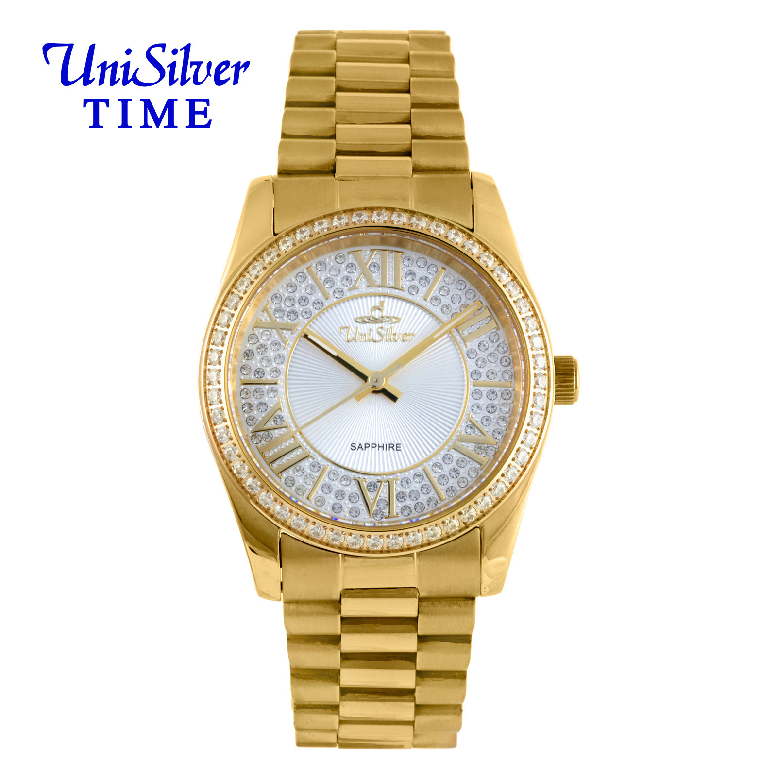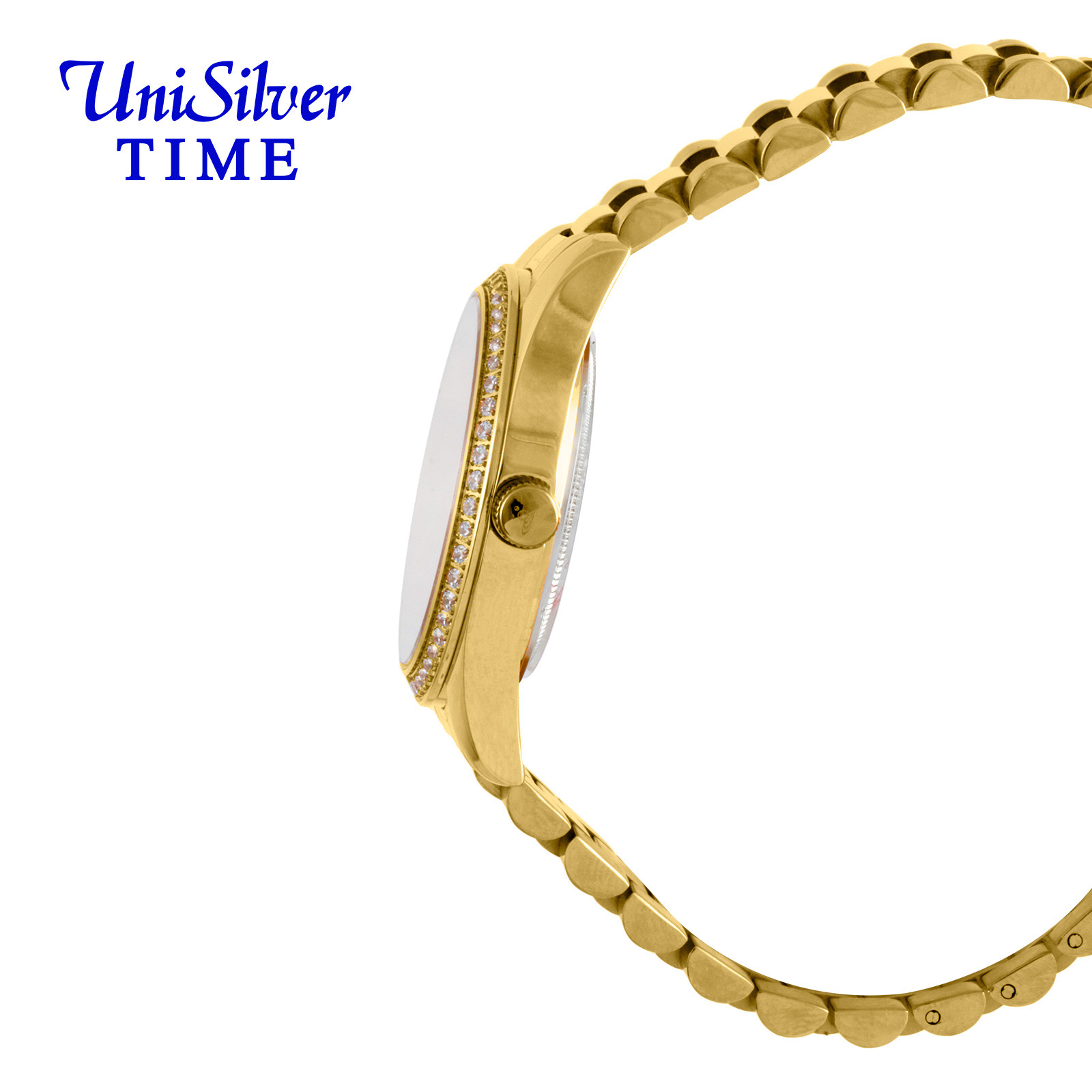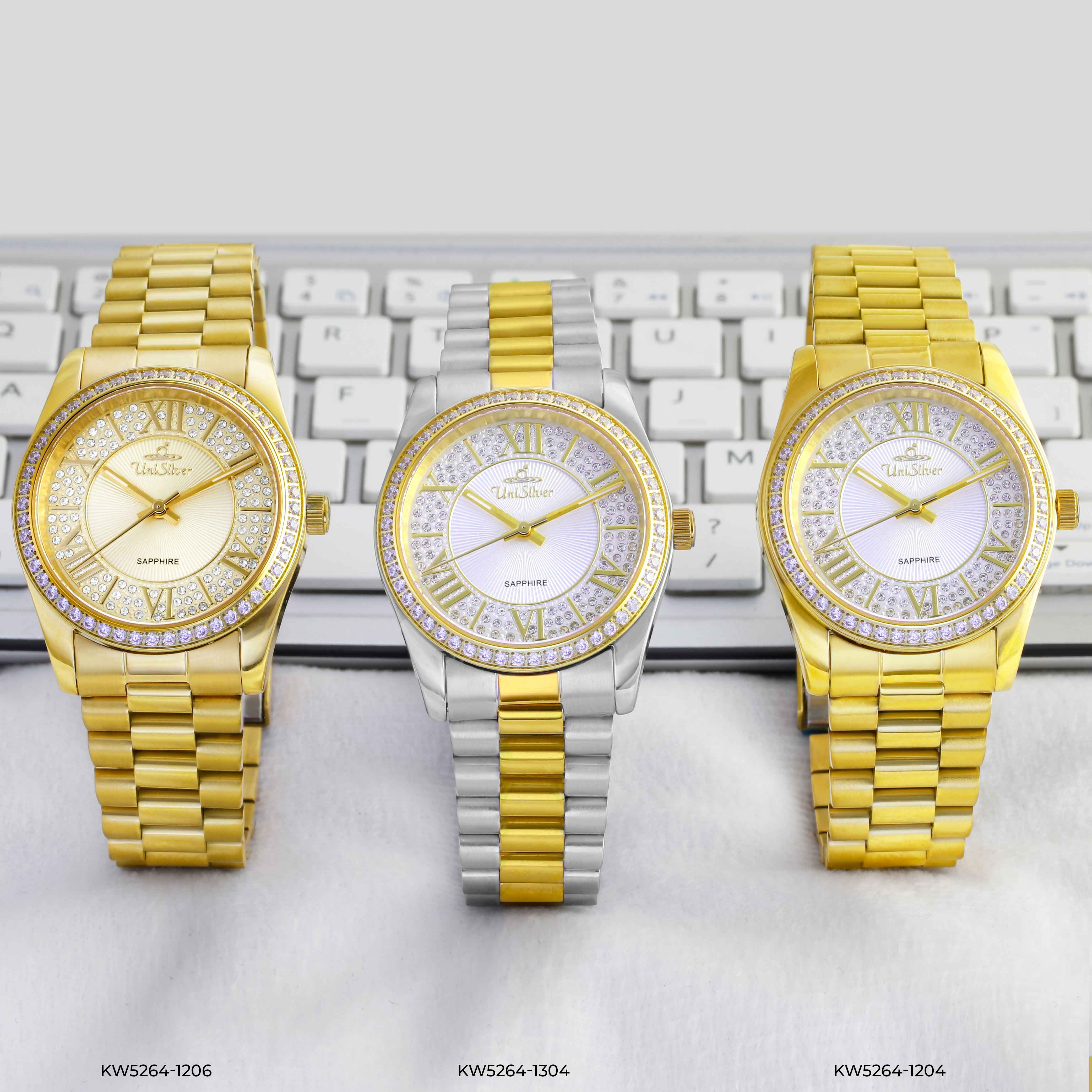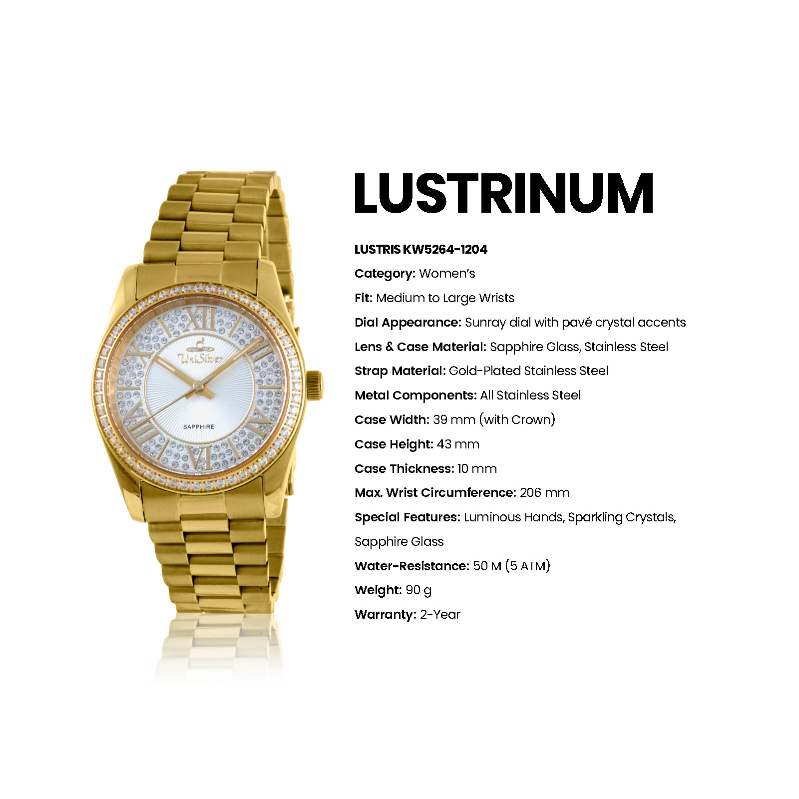 LUSTRINUM Women's Small to Medium Analog Sparkling Crystals Silvery White/Gold Stainless Steel KW5264-1204 Watch