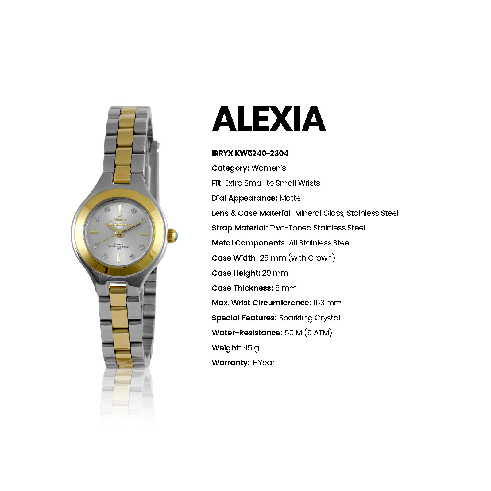 The ALEXIA Irryx by UniSilver TIME reflects modern elegance and refined versatility, designed with clean design and polished stainless steel craftsmanship.