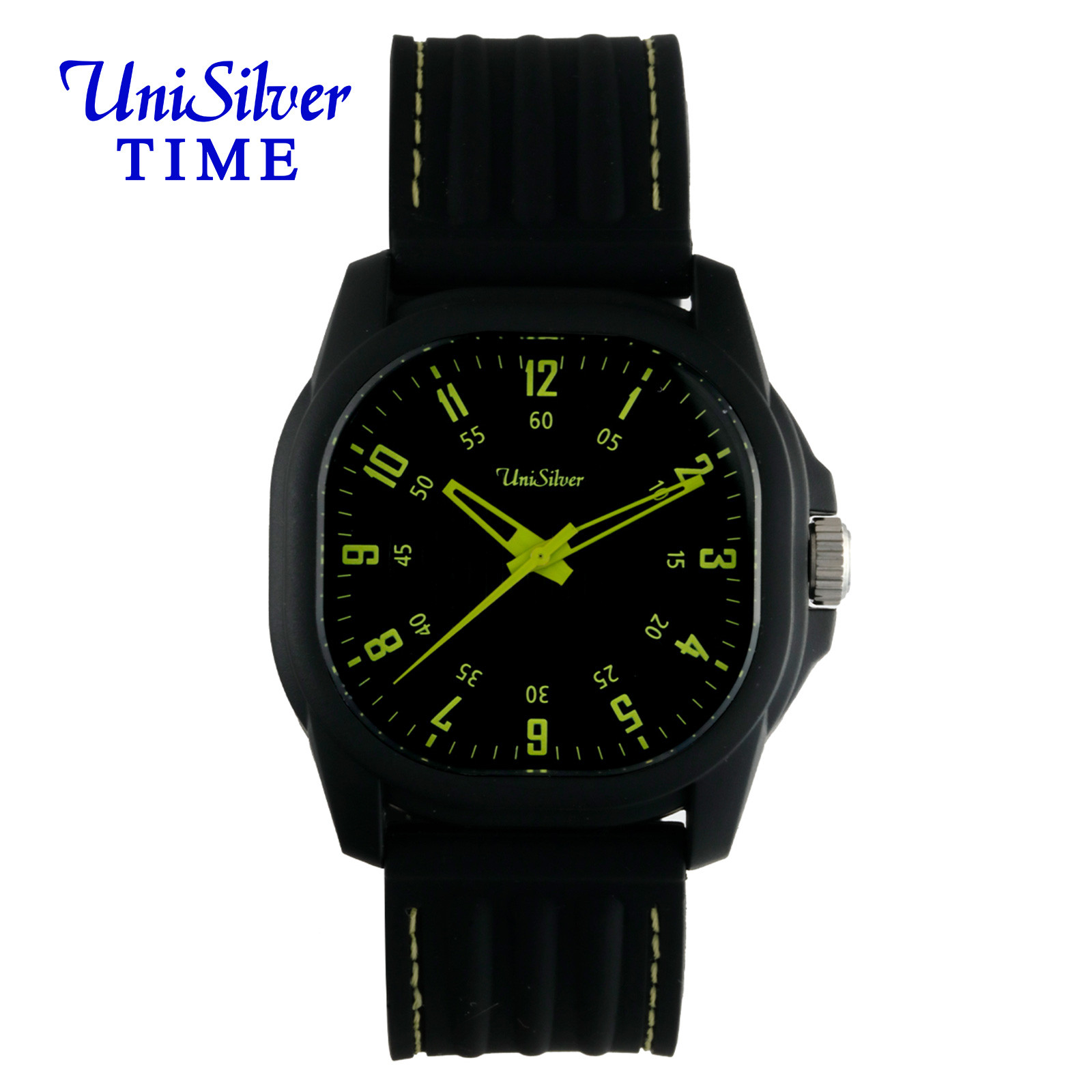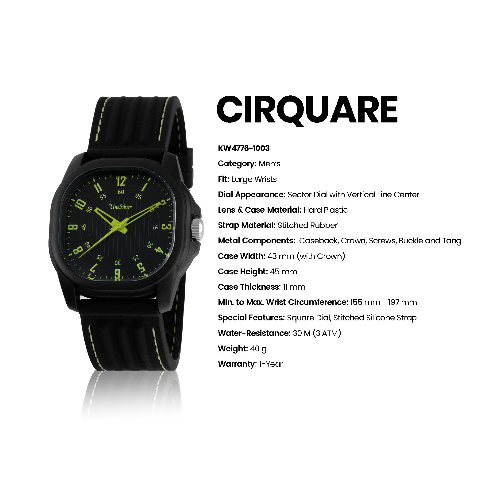 CIRQUARE Men's Small to Medium Analog Square/ Rectangle Dial Green/Black Stitched Rubber KW4776-1003 Watch
