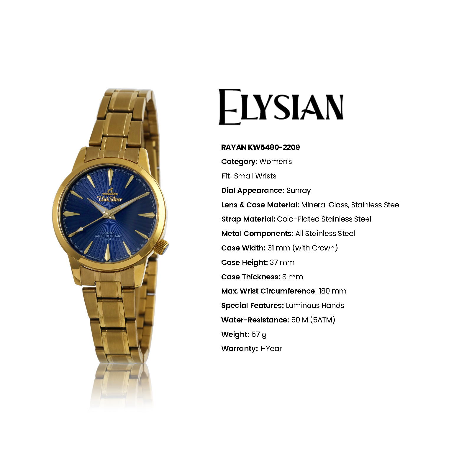 The Elysian Rayan Women’s Watch is a celebration of timeless elegance and graceful design. Crafted with meticulous attention to detail, it embodies sophistication in every element – from its delicate design to its refined finish. This exquisite timepiece transcends fleeting trends, offering a classic charm that enhances any ensemble. More than just a watch, it is a statement of poise and confidence for the woman who appreciates true luxury.