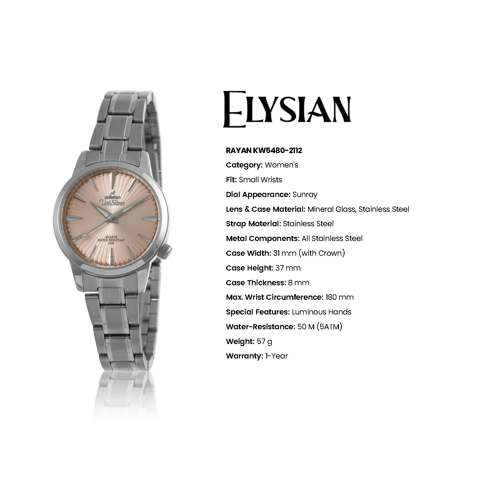 The Elysian Rayan Women’s Watch is a celebration of timeless elegance and graceful design. Crafted with meticulous attention to detail, it embodies sophistication in every element – from its delicate design to its refined finish. This exquisite timepiece transcends fleeting trends, offering a classic charm that enhances any ensemble. More than just a watch, it is a statement of poise and confidence for the woman who appreciates true luxury.