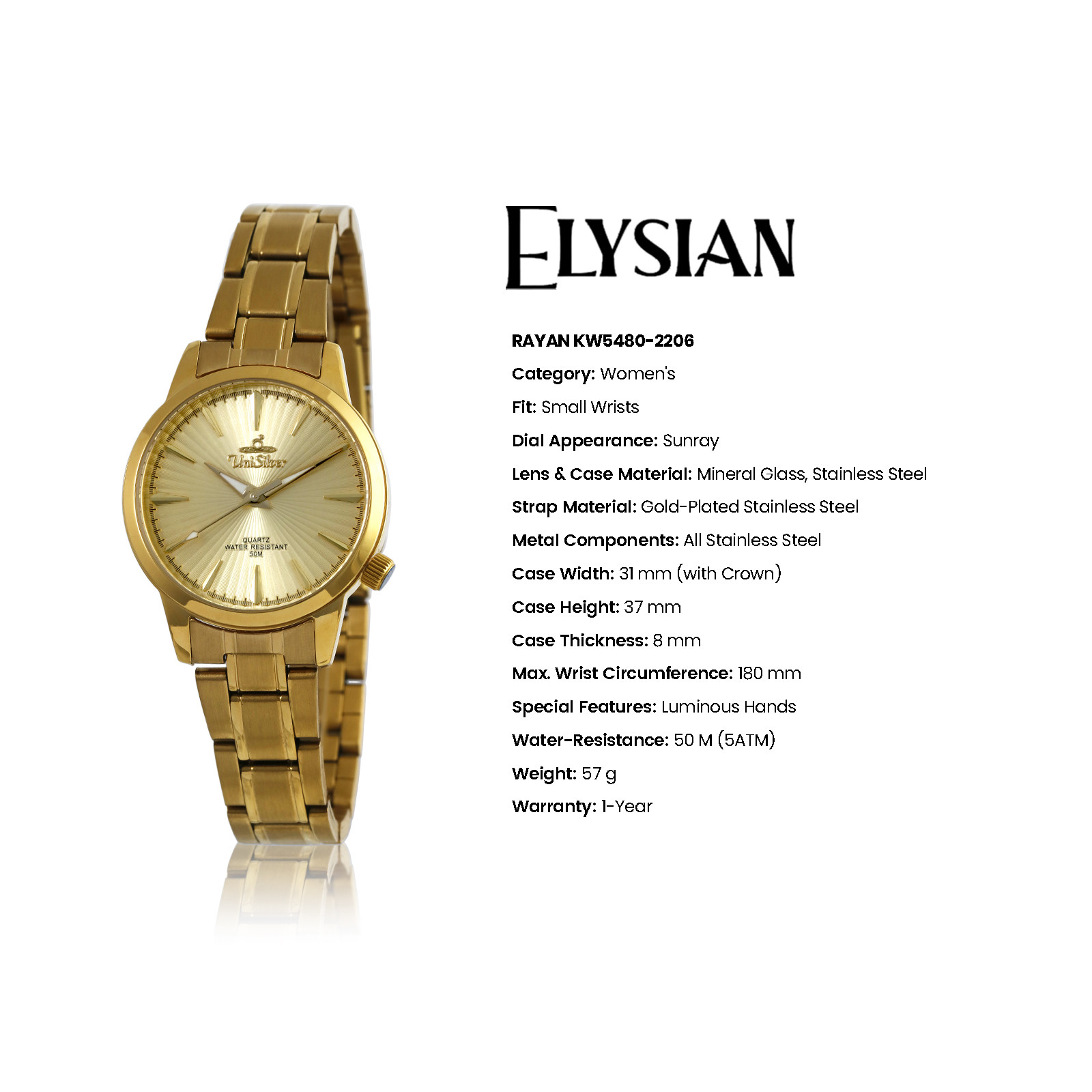 The Elysian Rayan Women’s Watch is a celebration of timeless elegance and graceful design. Crafted with meticulous attention to detail, it embodies sophistication in every element – from its delicate design to its refined finish. This exquisite timepiece transcends fleeting trends, offering a classic charm that enhances any ensemble. More than just a watch, it is a statement of poise and confidence for the woman who appreciates true luxury.