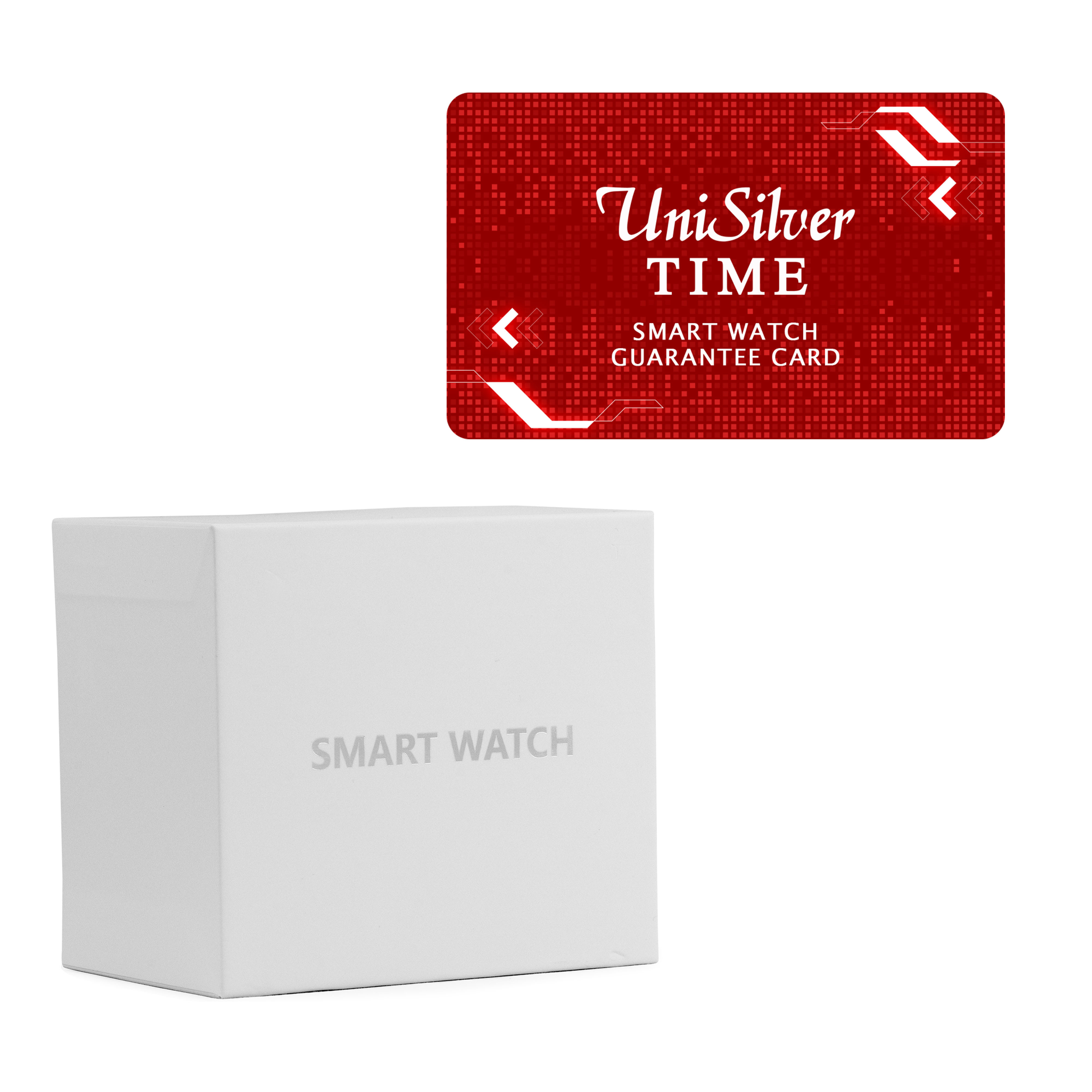 UniSilver TIME Smartwatch and its accessories are covered by a 1-year replacement warranty applicable on manufacturing defects. This Guarantee Card does not cover any physical damages or internal malfunctions resulting from misuse, accidents, unauthorized alteration, manipulation or repair, as well as the consequences of normal wear and tear. Please bring your Smartwatch together with this Guarantee Card to any UniSilver TIME shop for service.