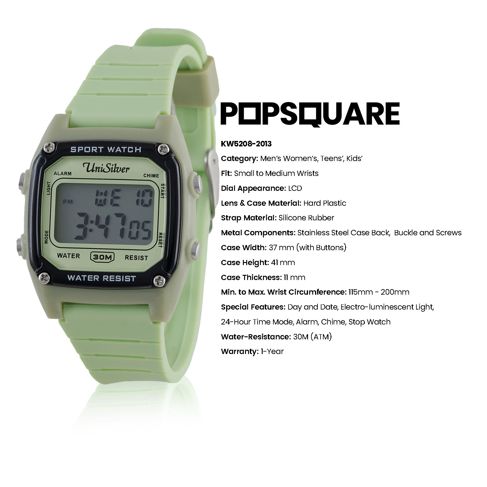 The PopSquare digital watch by UniSilver TIME is a modern, playful watch with a bold square design, made for everyday casual wear. Its sleek and vibrant look makes it easy to style with any outfit, whether you’re heading out for fun with friends, enjoying weekend adventures, or just adding a pop of personality to your day. Durable and comfortable, it’s designed to be a reliable companion for all your daily moments.