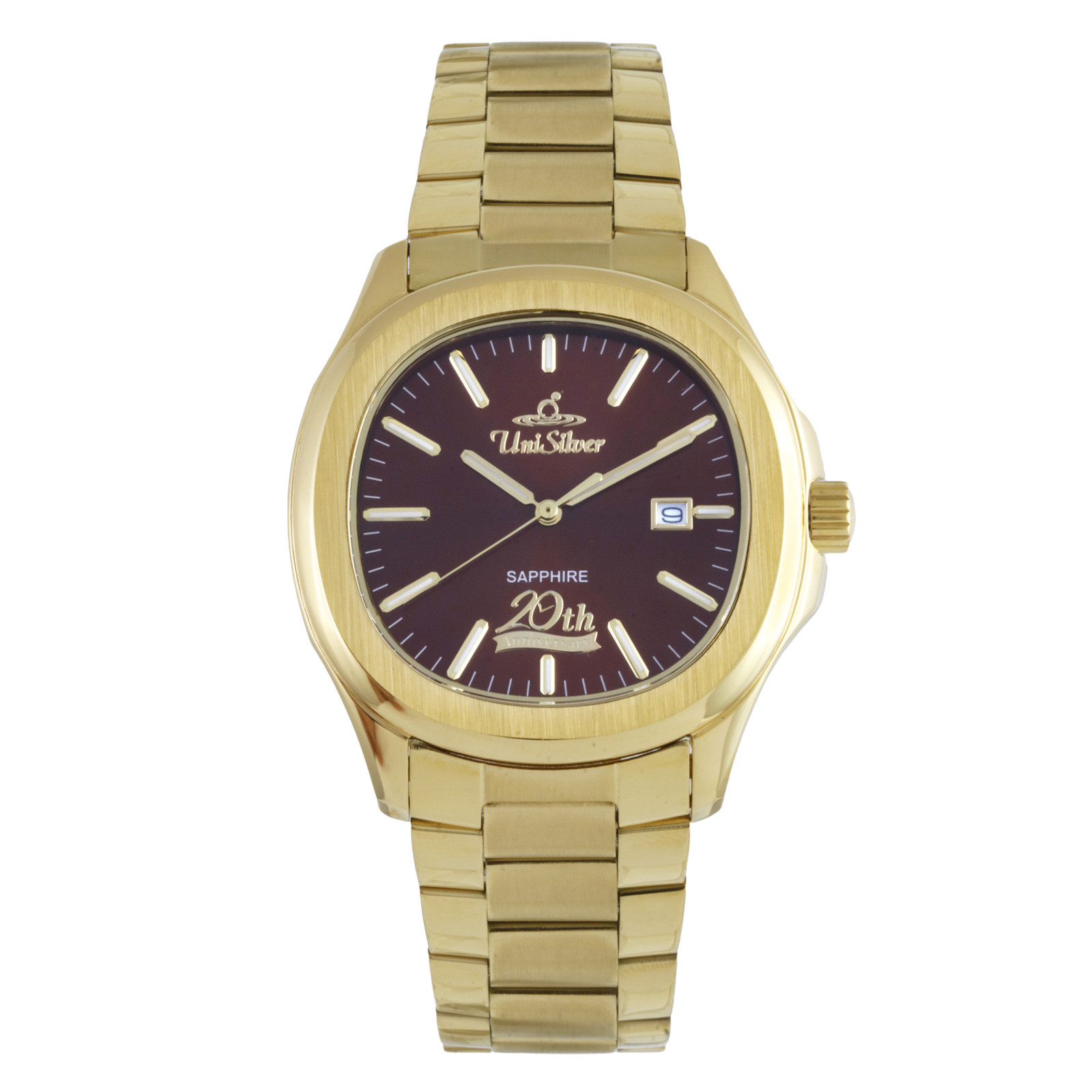 The UniSilver TIME Quantro Limited Edition 20th Anniversary watch embodies classic style with its clean analog dial and refined details. Protected by a scratch-resistant sapphire crystal, the Quantro maintains its pristine appearance through daily wear. This watch seamlessly blends elegance and durability, making it a perfect companion for both formal and casual occasions.