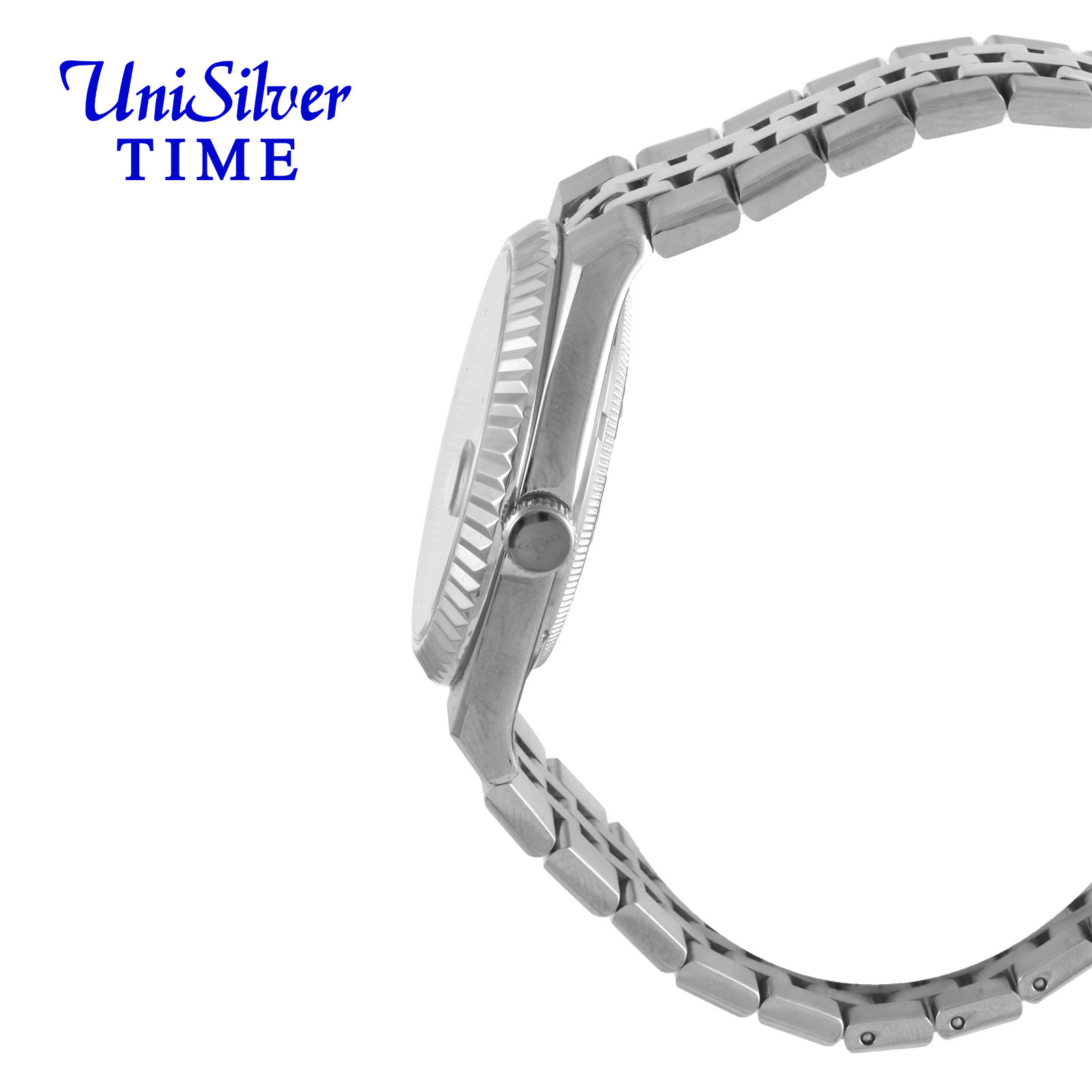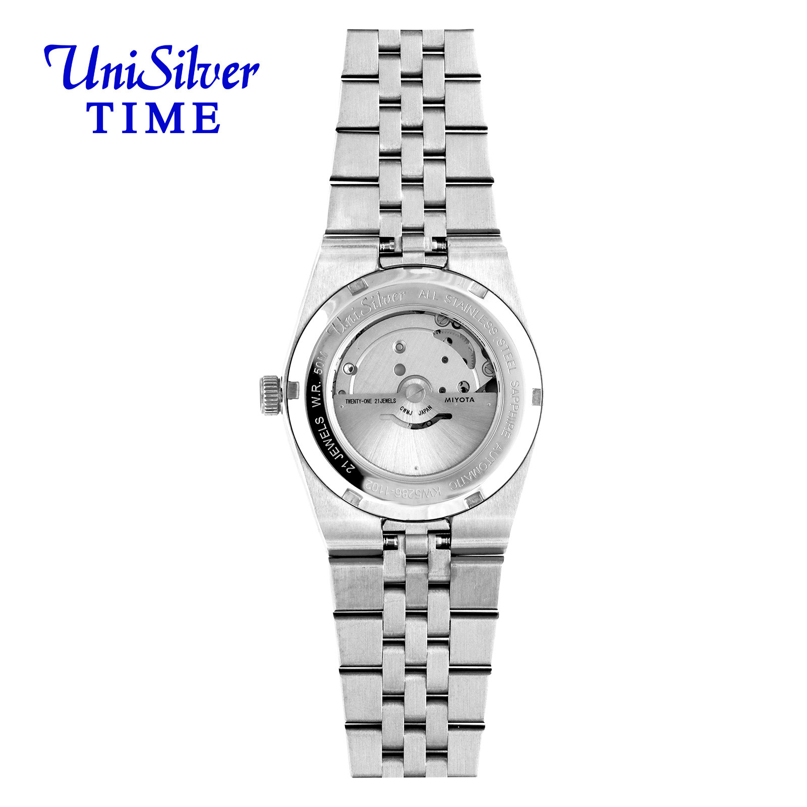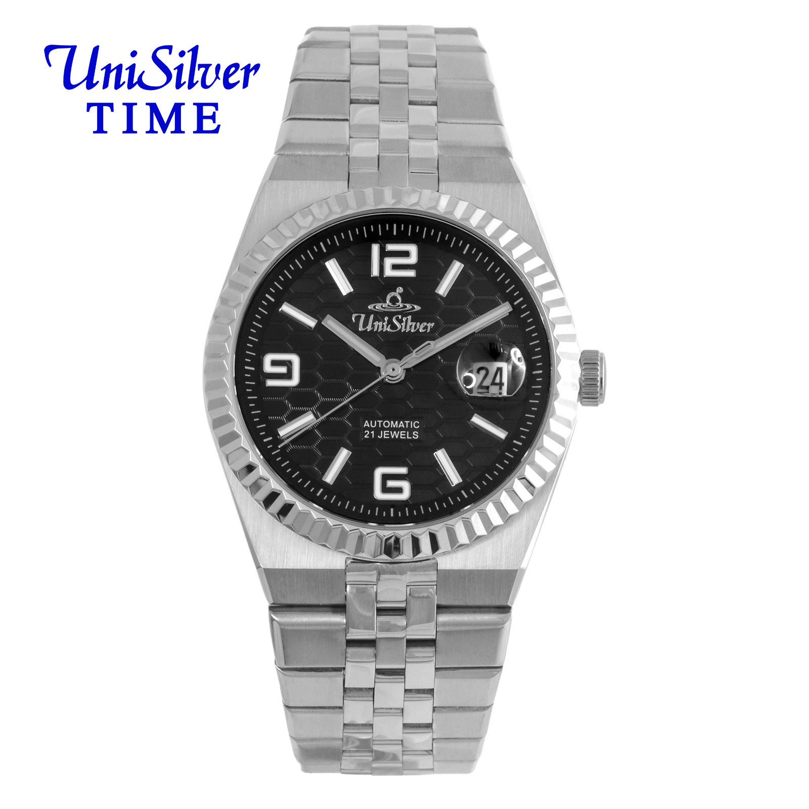 At its core is a self-winding 21-jewel movement, visible through an exhibition case back, delivering consistent performance without the need for a battery. The stainless steel construction and scratch-resistant sapphire crystal ensure lasting durability for everyday use.