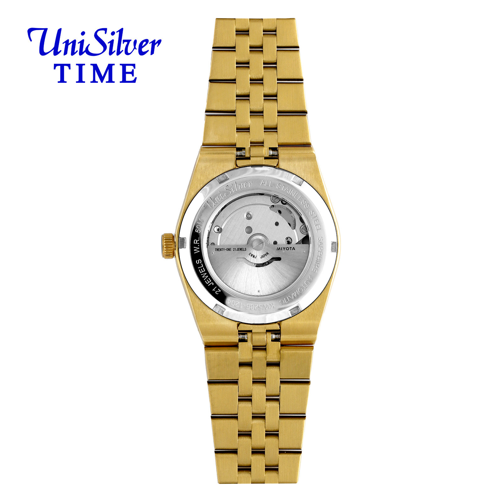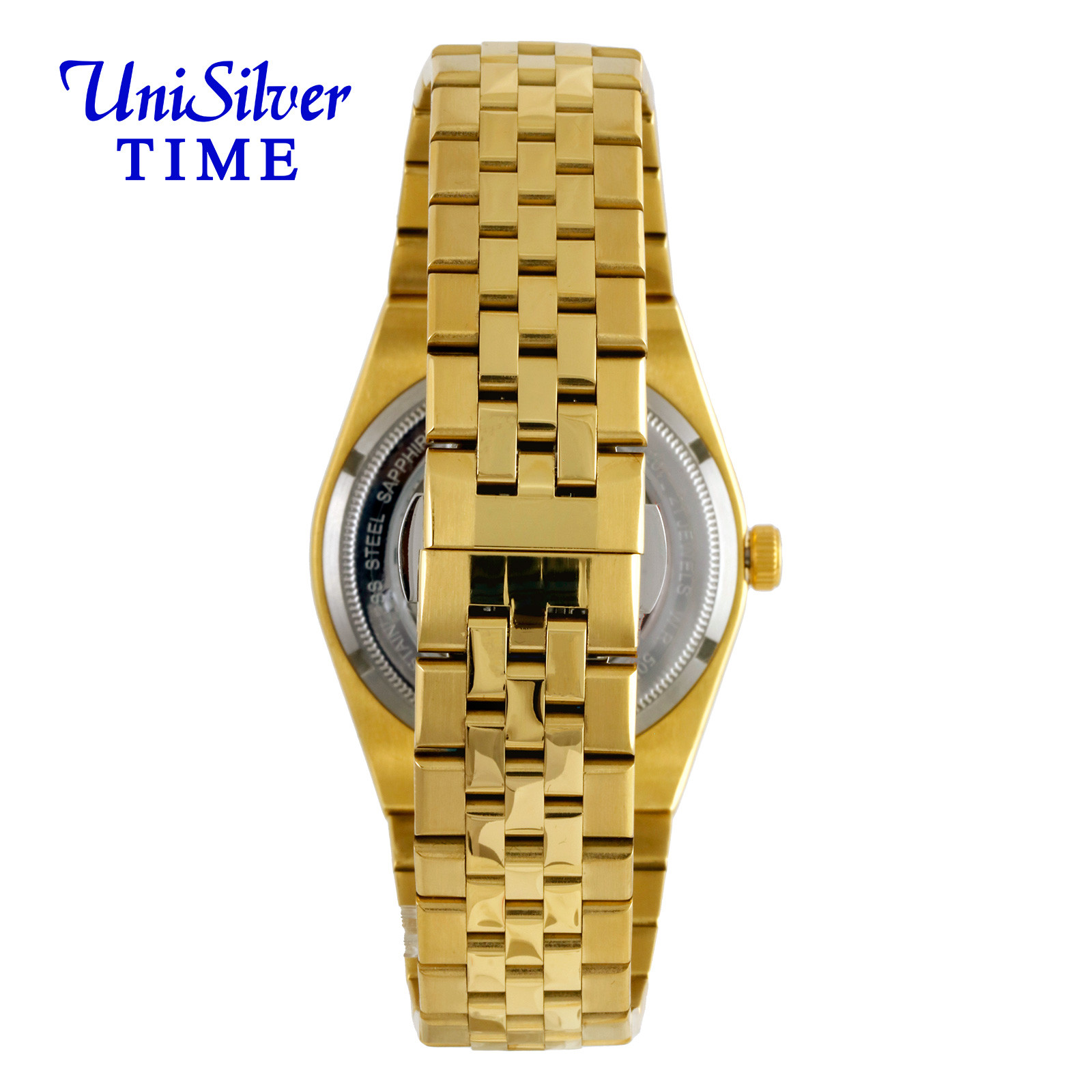 At its core is a self-winding 21-jewel movement, visible through an exhibition case back, delivering consistent performance without the need for a battery. The stainless steel construction and scratch-resistant sapphire crystal ensure lasting durability for everyday use.