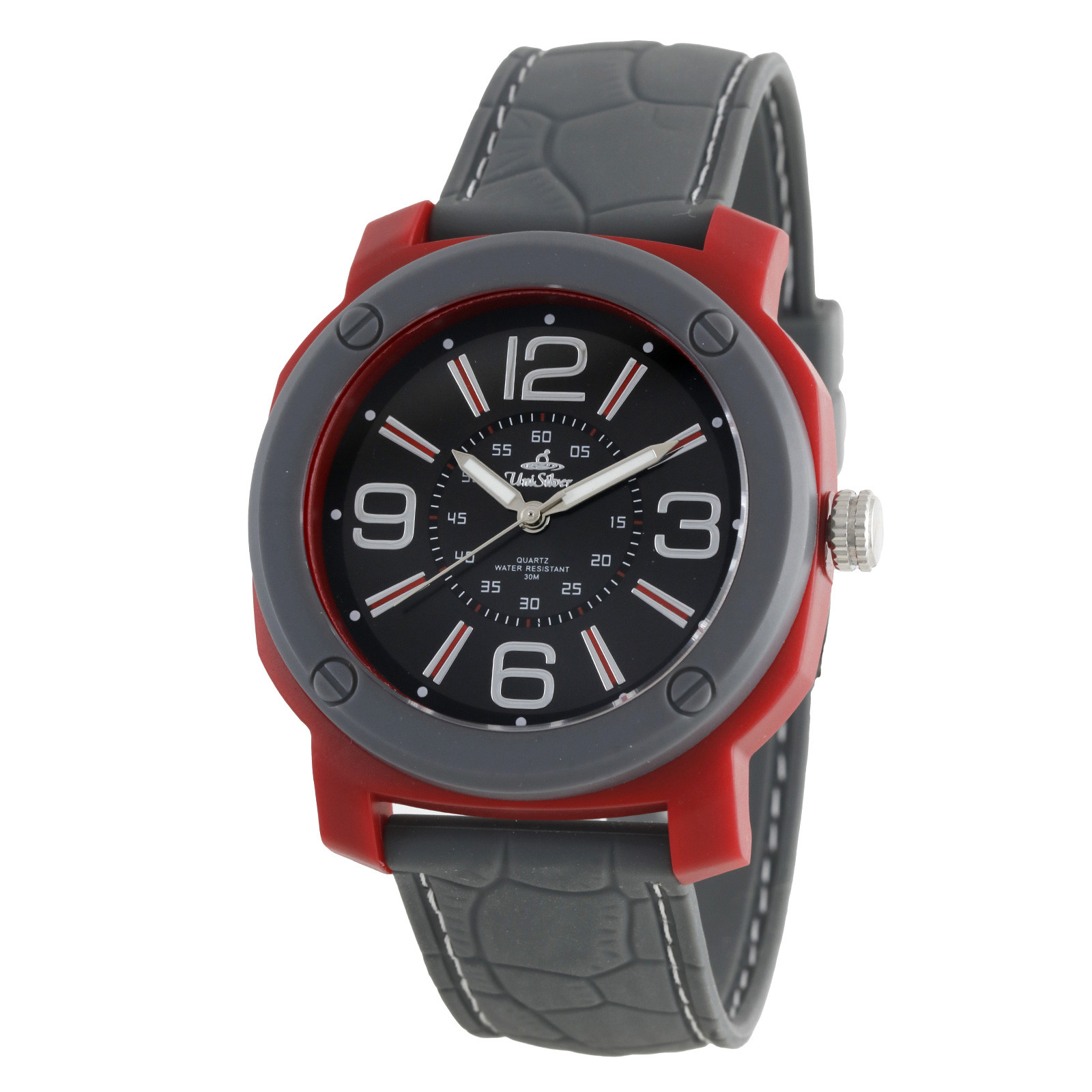 Be on the wild side of style with this ruggedly handsome timepiece. It has a detailed dial inside a uniquely shaped case, and a stitched leather-like rubber strap. Match it with your casual outfits for a top notch get up. Get the Wild Ryder only from UniSilver TIME!