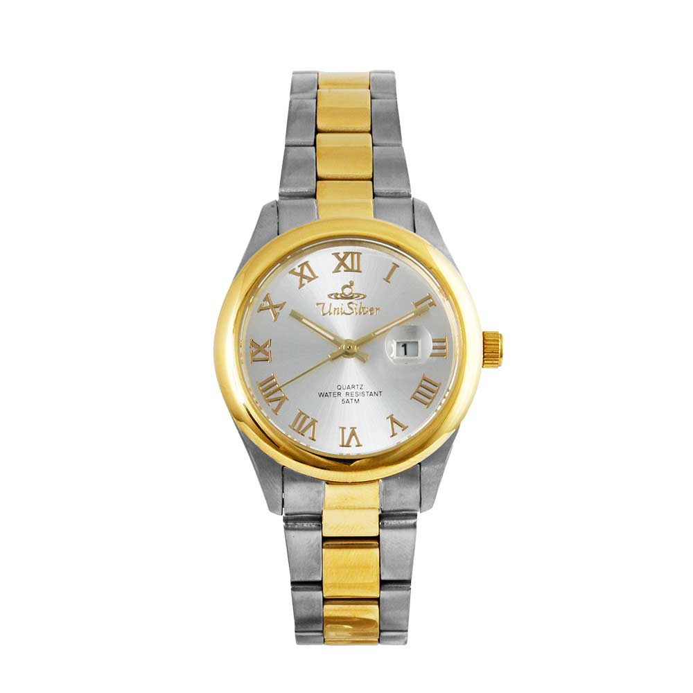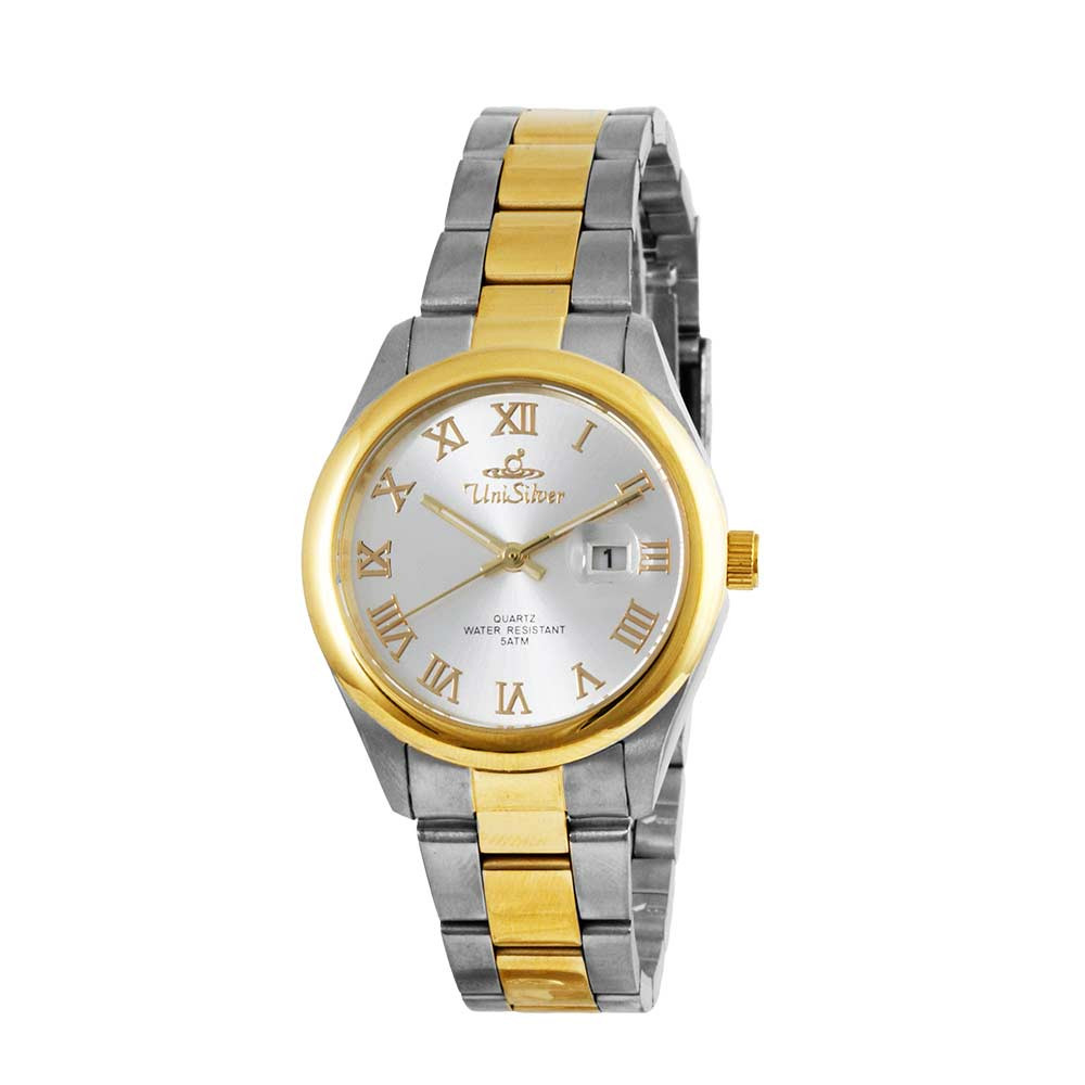 Emit glamour and elegance with the Zaxtra timepiece from UniSilver TIME. This accessory gleams with its sleek bracelet and crystals for hour indices. It's the fitting finish to a formal attire.